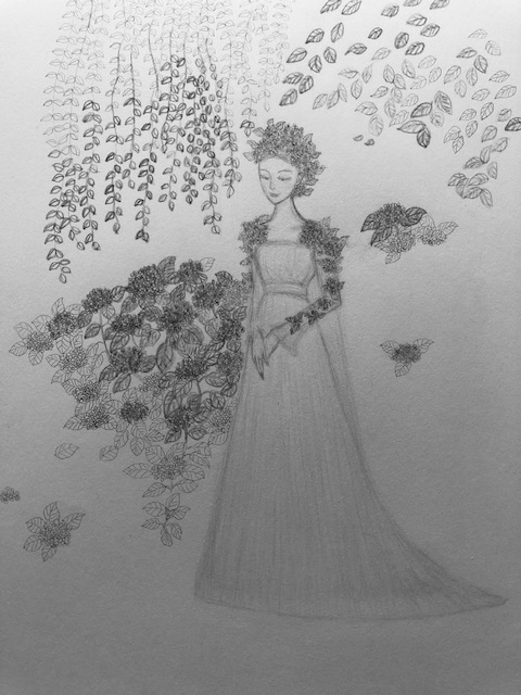 6月といえば、私は、紫陽花をイメージします。6月に完成させたかったけど、無理なので、とりあえず下絵をアップします。
